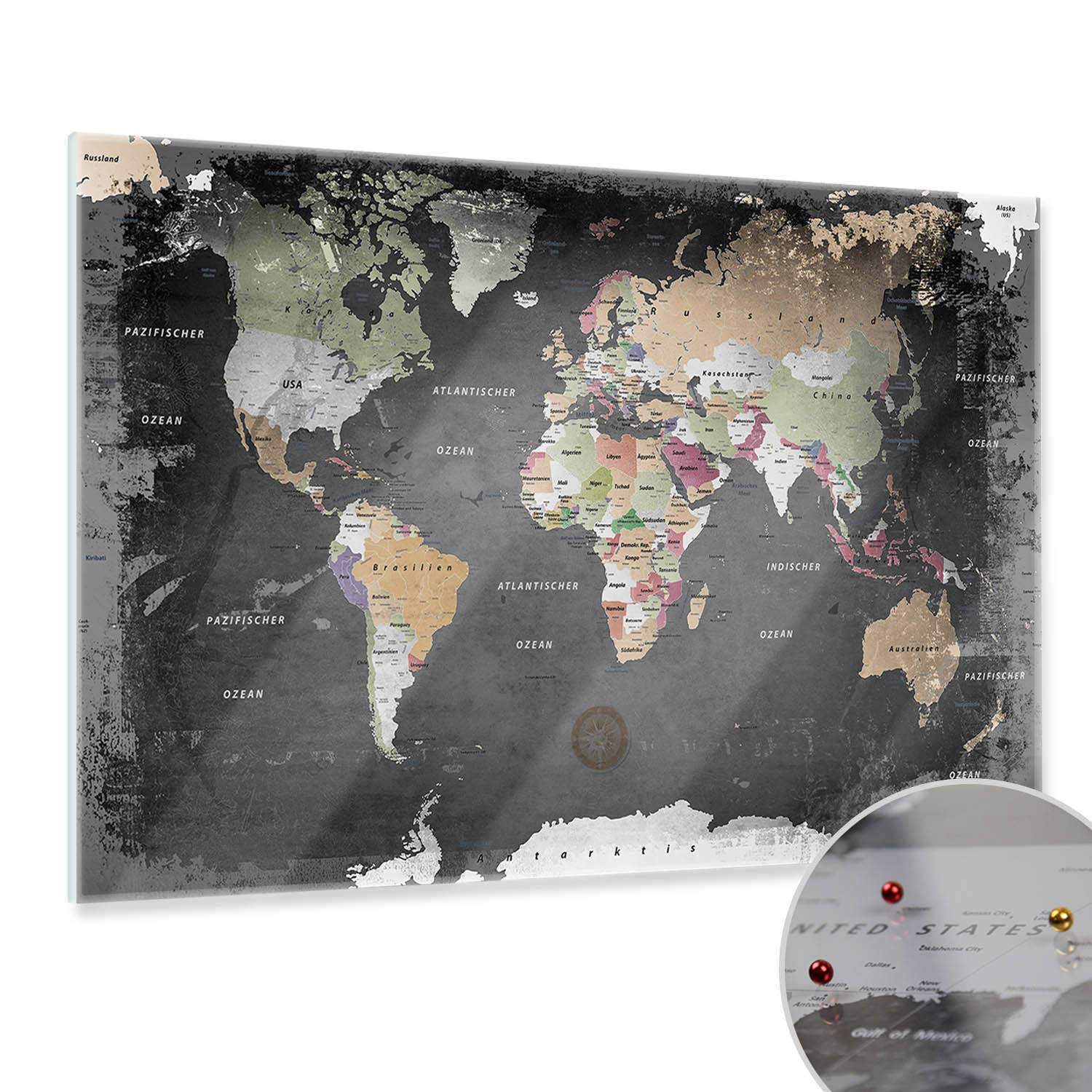 Magnetisches Glasbild - Weltkarte Graphit